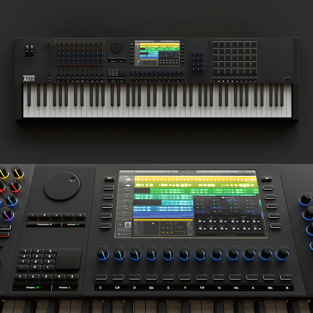 In this project, I set out to create my dream MIDI controller keyboard. For left side, I took inspiration from my Livid DS1 for the faders and knobs. The middle section would serve as a mointor for my computer. The right side is a lot of drum pads. All the labels are dynamic and would change based on how the adjacent control is mapped.
